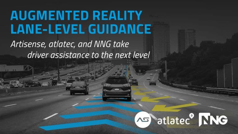 Join us and our partners, Artisense and atlatec, for an Augmented Reality Lane-Level Guidance experience, just outside the expo center – and discover how advanced guidance and visualization, fusing 6D sensor data with HD-enriched maps, can enhance both on- and offline advanced driver assistance systems.
